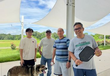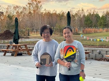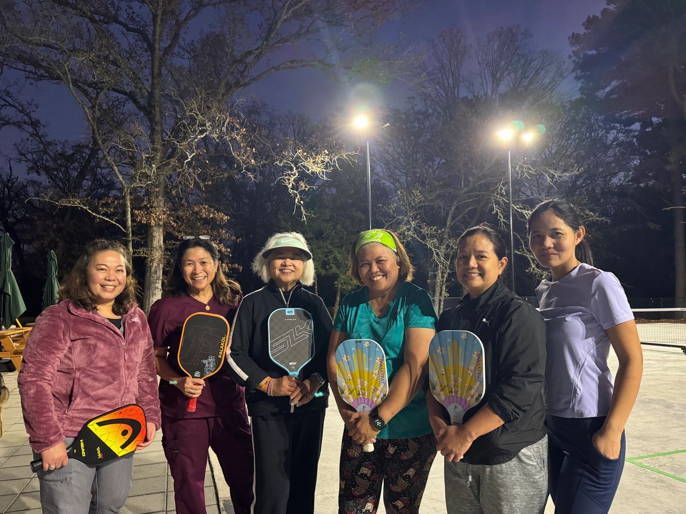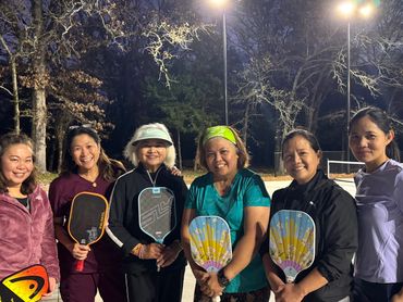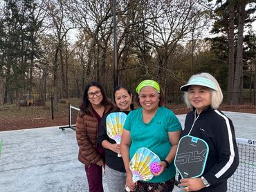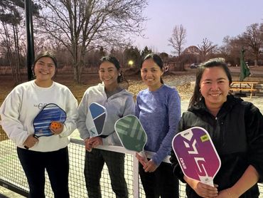 Samahan ng mga magkakaibigan na nageenjoy na maglaro ng pickleball.